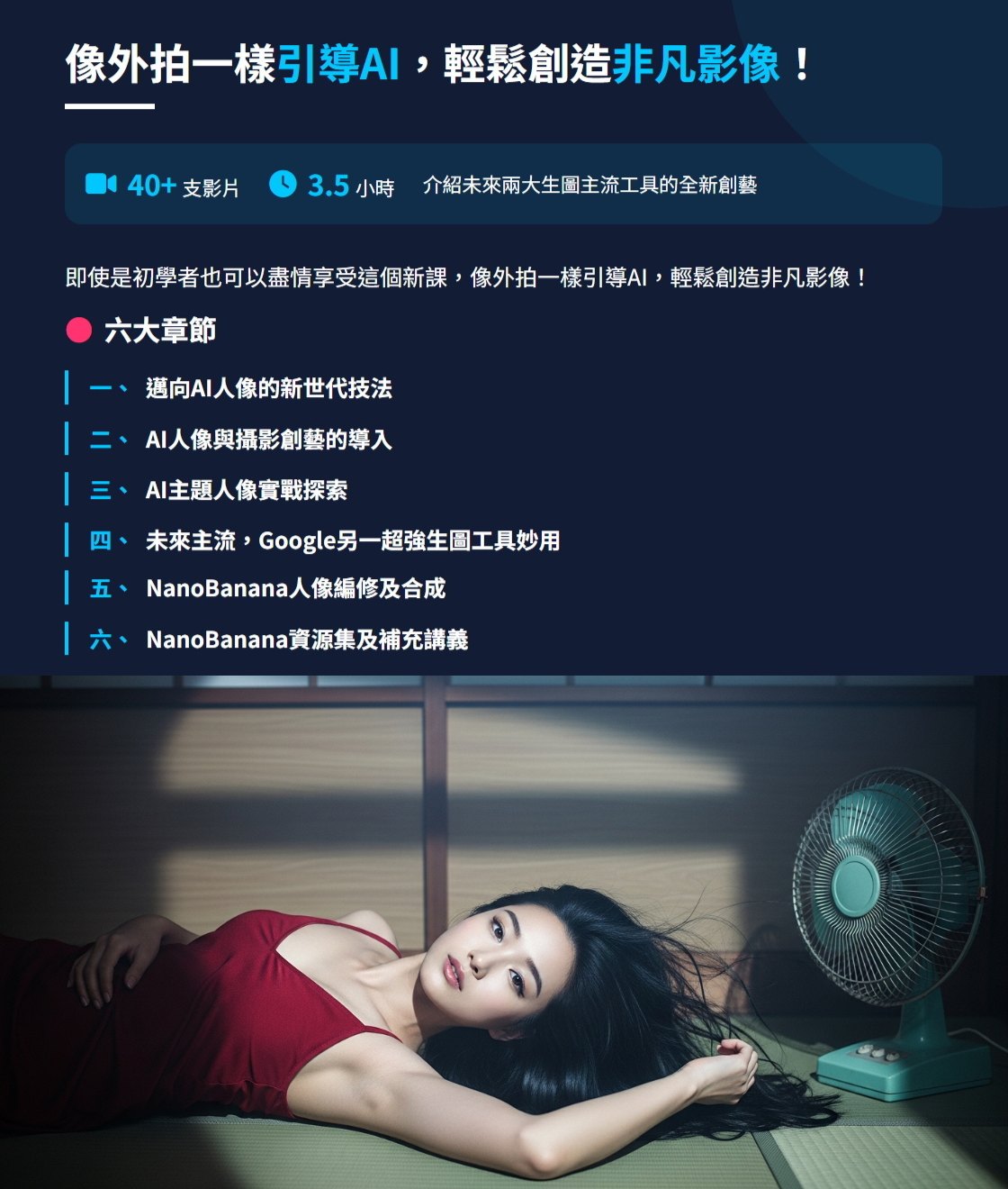這個課程預計有40+支影片,時長約3.5小時,介紹未來兩大生圖主流工具的全新創藝(8/8影片開始陸續上架),以及Gemini最新的NanoBanana核心應用技巧。